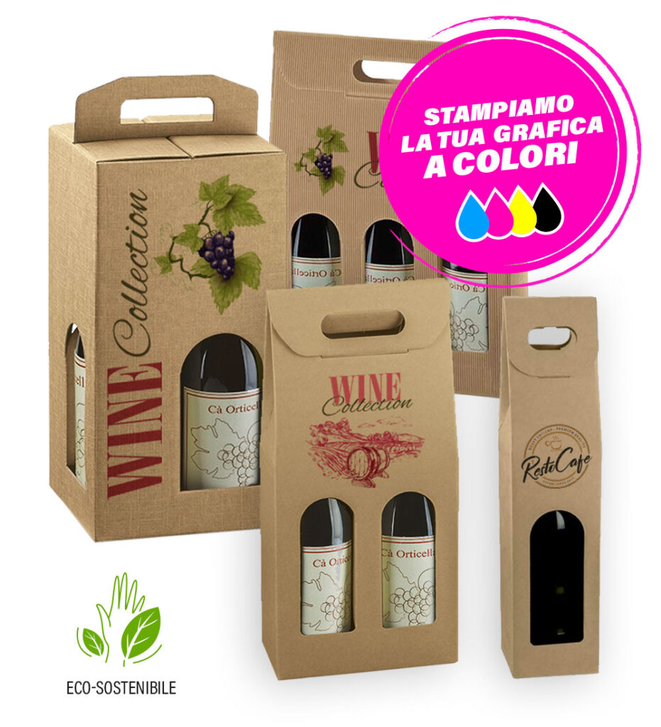 Portabottiglie Vino Prosecco Liquori. Resistenti ed Ecosostenibili. Disponibili Neutre o Personalizzabili anche in piccole quantità a partire da 10pz.